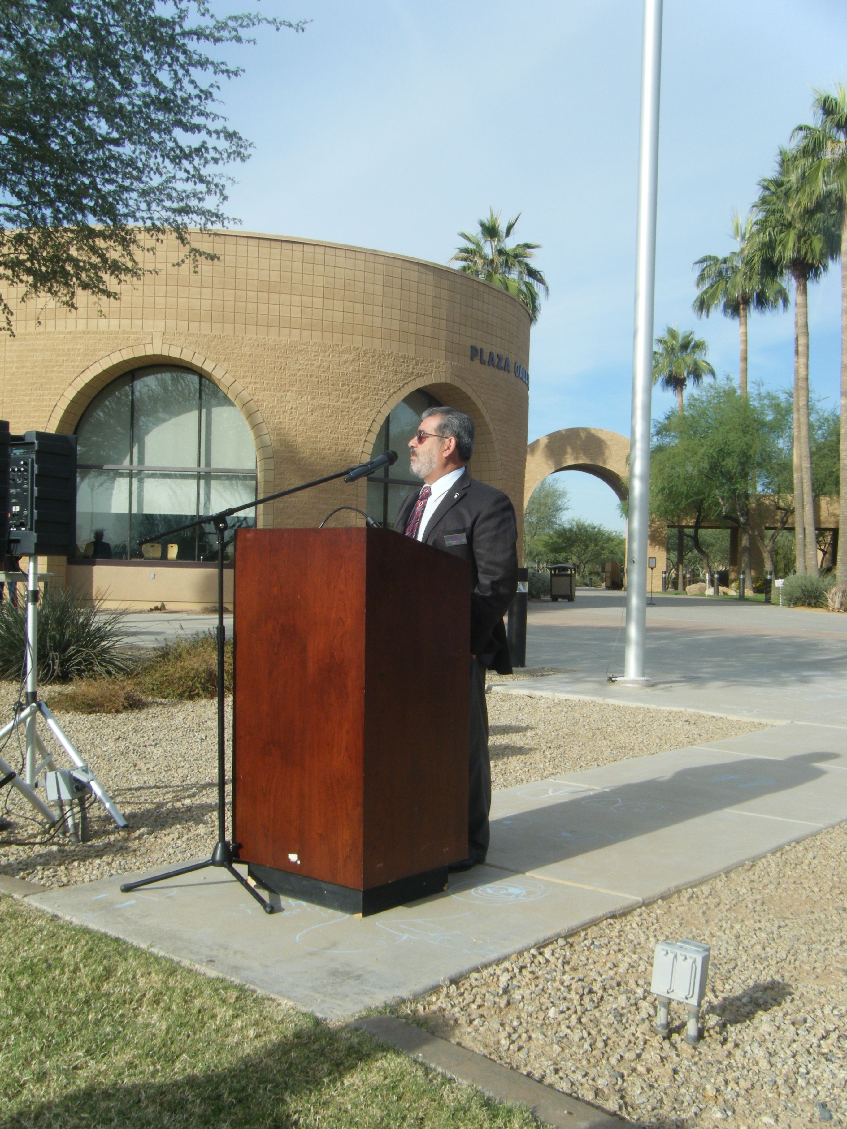 Following Zuleger's welcome, the college's president, Dr. Ernest Lara also discussed his experience in the military, having served in the United States Army. Lara talked about the importance of the GI Bill and that veterans should utilize this benefit to continue their education. Estrella Mountain Business Faculty, Dr. John Bradley echoed those sentiments telling audience members that had it not been for the GI Bill, he may not be where he is today.