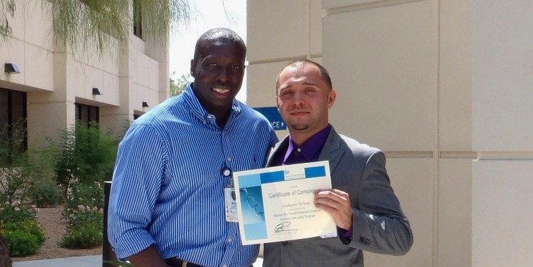 AVONDALE, Arizona – Nathanial Belnap, a 23-year-old, May 2012 honors graduate of Estrella Mountain Community College (EMCC), had the opportunity to experience an exclusive internship during the summer at the Banner Sun Health Research Institute that he calls “life-changing.”
