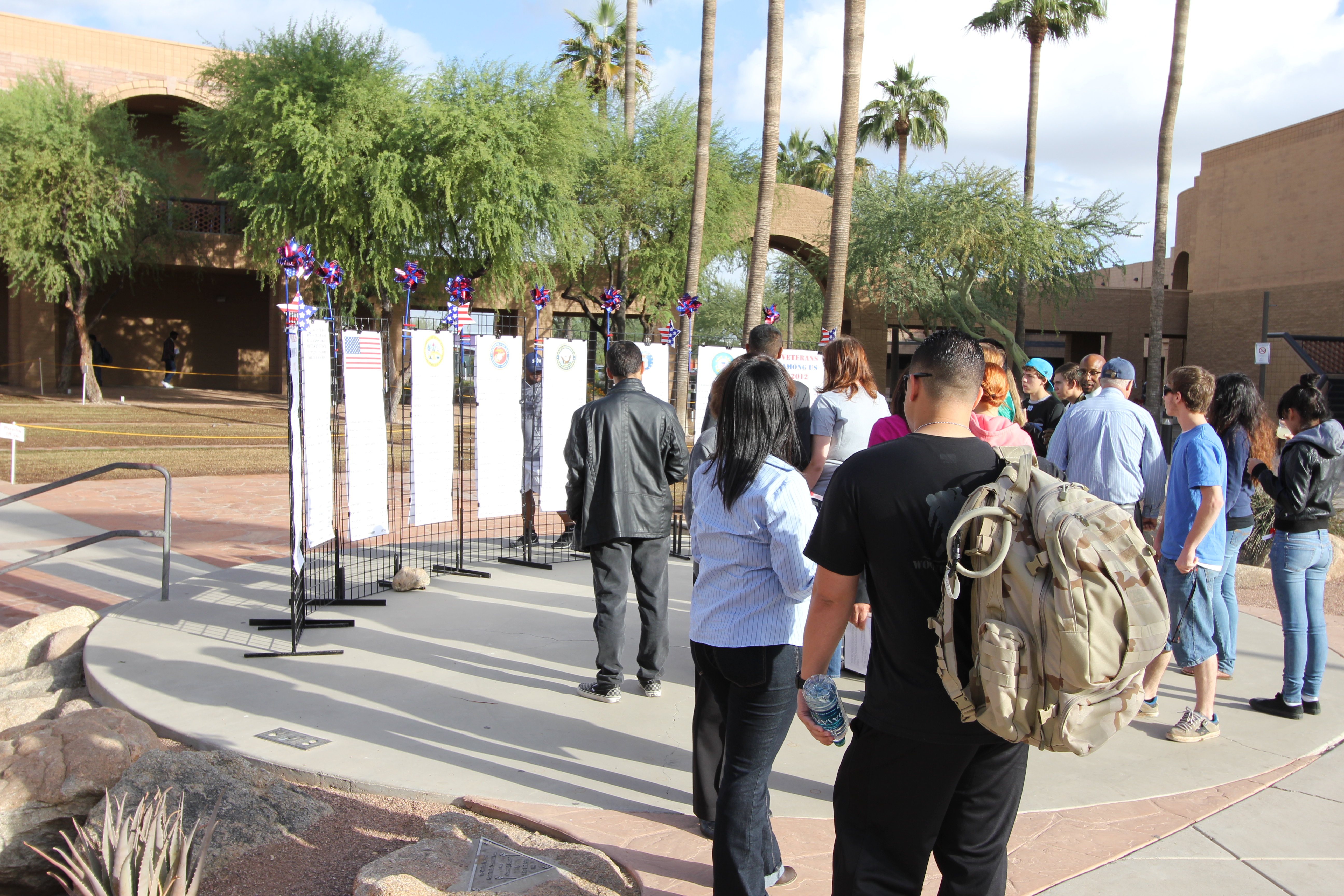In honor of Veterans Day 2012, EMCC Veterans Services created a “wall of names” to honor and recognize those veterans who are working, studying or teaching in the EMCC community. This year’s theme, Veterans Among Us, was the title for the display as well as a ceremony held on Friday, November 9 in the Ceremonial Plaza Stage.