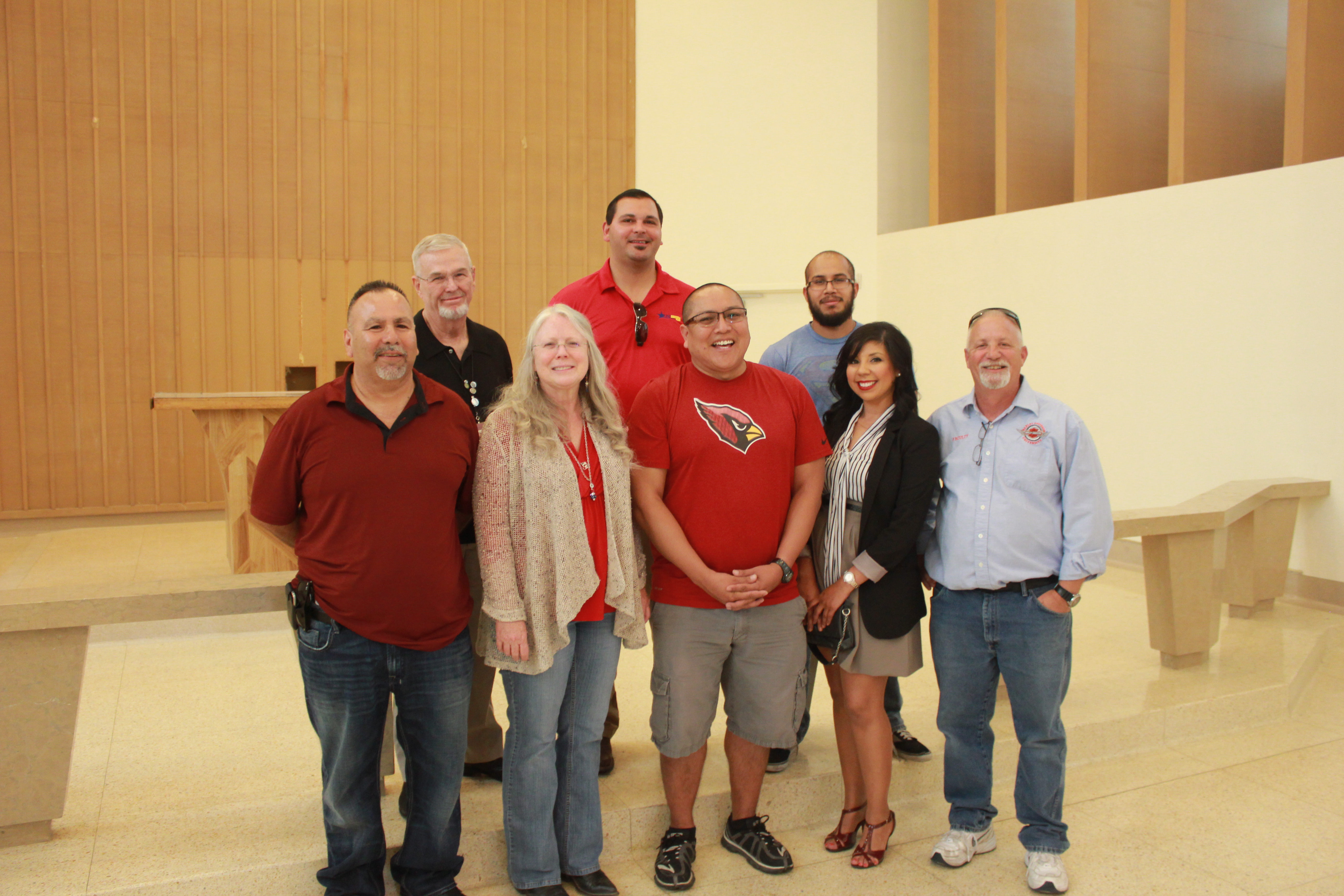 (left to right, front: Michael Hernandez-U.S. Vets TIP Coordinator, Nancy Fisher-EMCC Vets Center Coordinator, Michael Kenneth-EMCC student & Vets Club member, Maryhelen Rosales-EMCC Vets Club Advisor, Tom Koch-EMCC student & Vets Club president; left to right top: John Bradley-EMCC faculty & Vets Club advisor, John Scott-U.S. Vets Executive Director, Isaac Estrada-EMCC student & Vets Club member)