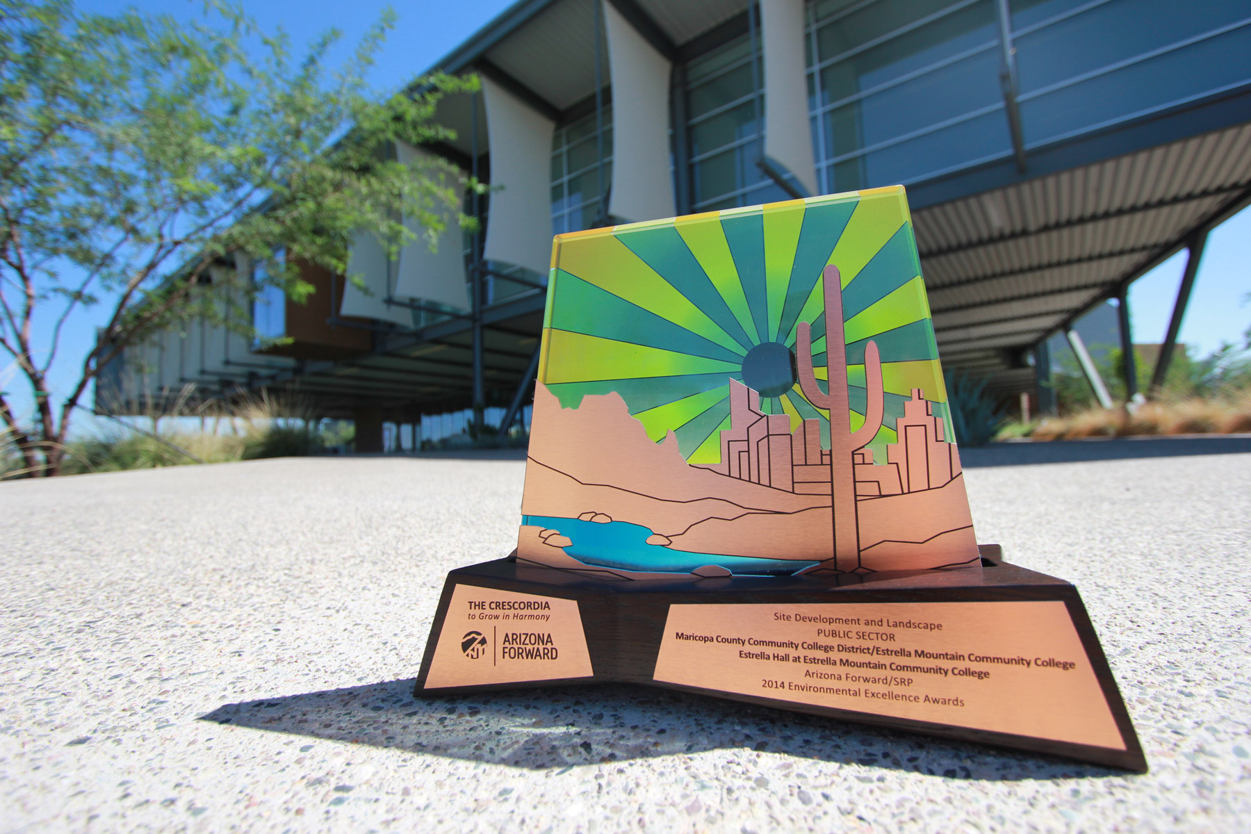 AVONDALE, Arizona – September 26, 2014 – Estrella Mountain Community College (EMCC), one of the ten Maricopa Community Colleges, received the Crescordia Award for Site Development and Landscape in the Public Sector category of the 2014 Arizona Forward Environmental Excellence Awards.