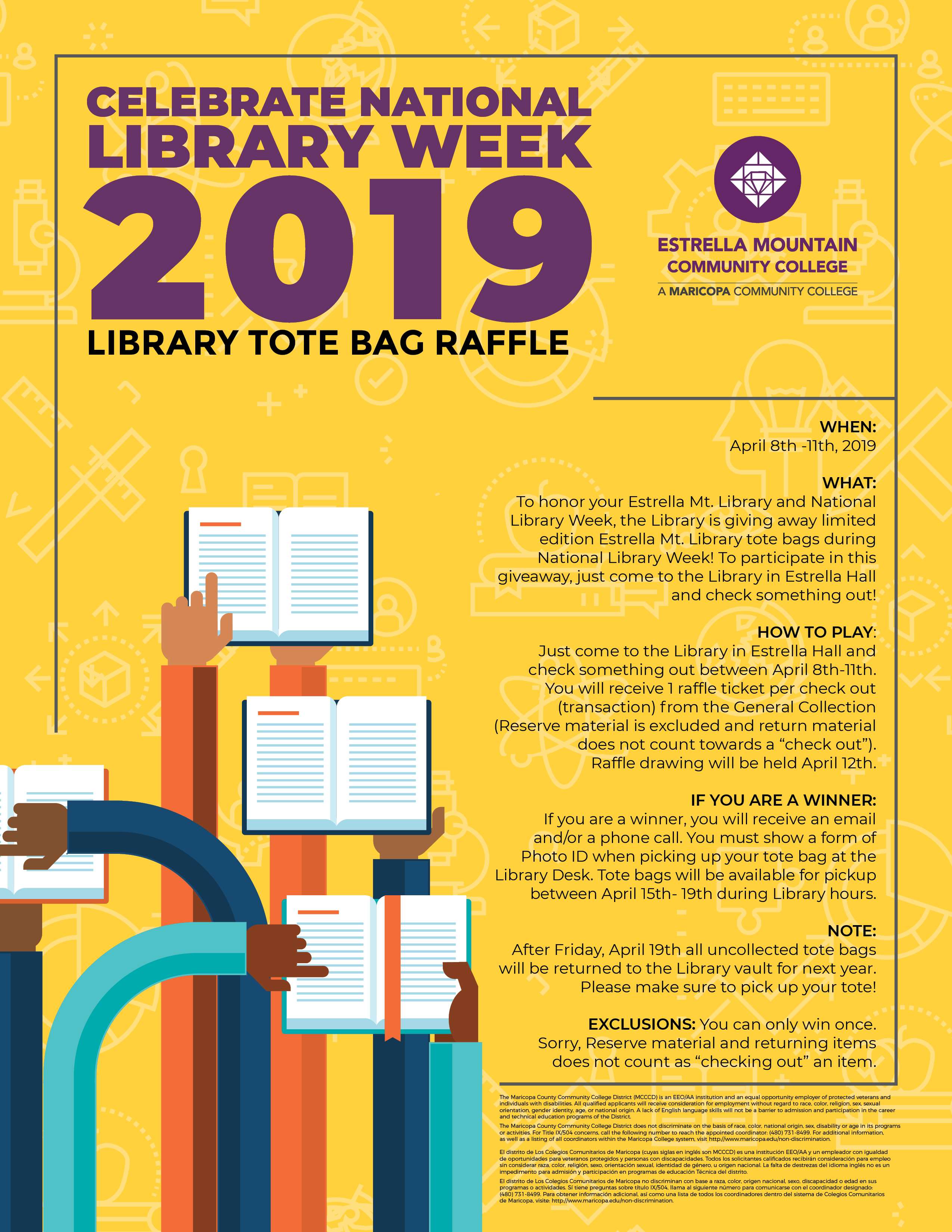 In honor of National Library Week, the Estrella Mountain Community College (EMCC) Library is holding its first ever National Library Week Tote Bag Raffle.