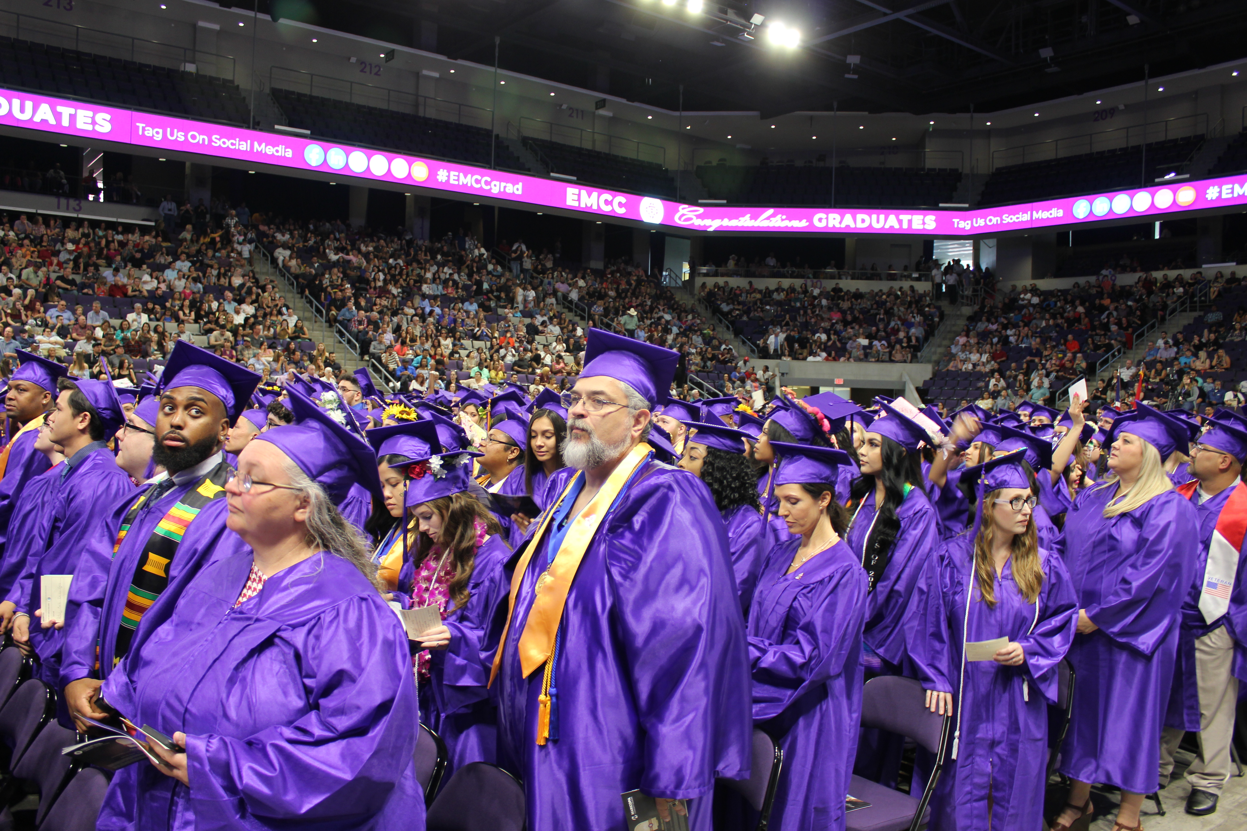 The 23rd Annual Commencement Ceremony, EMCC’s largest to date, was short and sweet. After all, EMCC wasn’t the only Maricopa Community College to hold its graduation ceremony on May 10 at GCU. But the pomp and circumstance was clearly apparent. From the processional to the posting of the colors to the national anthem, sung by EMCC’s own students Candice and Crystal Sipe, reverence was in abundance from the onset.