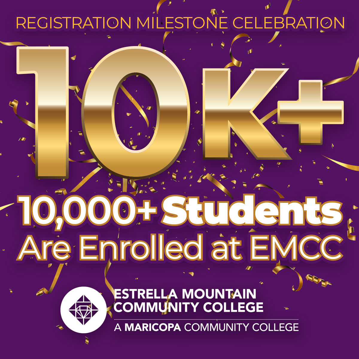 For the first time in Estrella Moutain Community College’s 27-year history, enrollment has surpassed 10,000. As of EMCC’s 45th-day census date, student headcount was at 10,120.